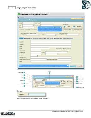 4 Empresas para facturación Nueva empresa para facturación: Campos: Este campo debe de ser definido por el usuario. © Derechos Reservados de Betta Global Systems 2025