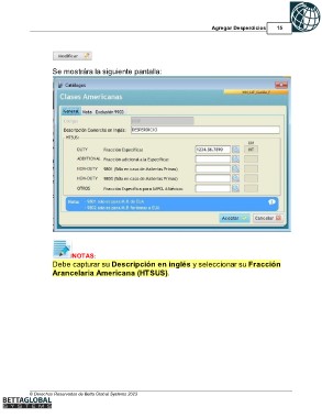 Agregar Desperdicios 15 Se mostrára la siguiente pantalla: NOTAS: Debe capturar su Descripción en inglés y seleccionar su Fracción Arancelaria Americana (HTSUS). © Derechos Reservados de Betta Global Systems 2023