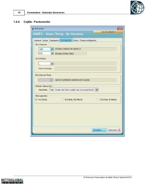 10 Parametros - Entradas Generales 1.2.4 Cejilla - Facturación © Derechos Reservados de Betta Global Systems2023
