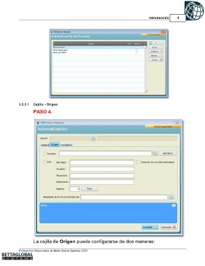 Introducción 5 1.2.3.1 Cejilla - Origen PASO 4: La cejilla de Origen puede configurarse de dos maneras: © Derechos Reservados de Betta Global Systems 2023